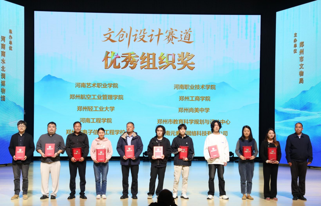 9月26日下午,首届“唐韵青花 数创未来”数字文创设计大赛颁奖典礼在郑举行,该赛事由郑州市文物局主办、河南南水北调博物馆承办。我校视觉传达设计系师生在葛露副院长的带领下受邀出席,与来自各大高校的600余名师生代表共同见证了这一数字文创盛事。