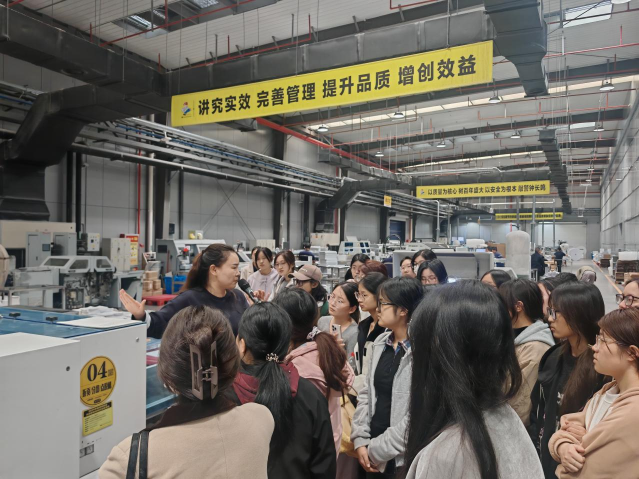 2025 年 10 月 10 日,郑州航空工业管理学院 2023 级视觉传达设计专业学生在崔磊老师的带领下,走进河南商丘永城河南盛大智能印刷集团有限责任公司,先后参观了印刷展厅、印刷车间、加工车间及物流仓库等核心区域。企业代表招聘专员王亚男全程接待讲解,这场沉浸式实践活动成为校企合作课程建设的重要实践环节,为课堂理论知识搭建起通向产业实践的桥梁。