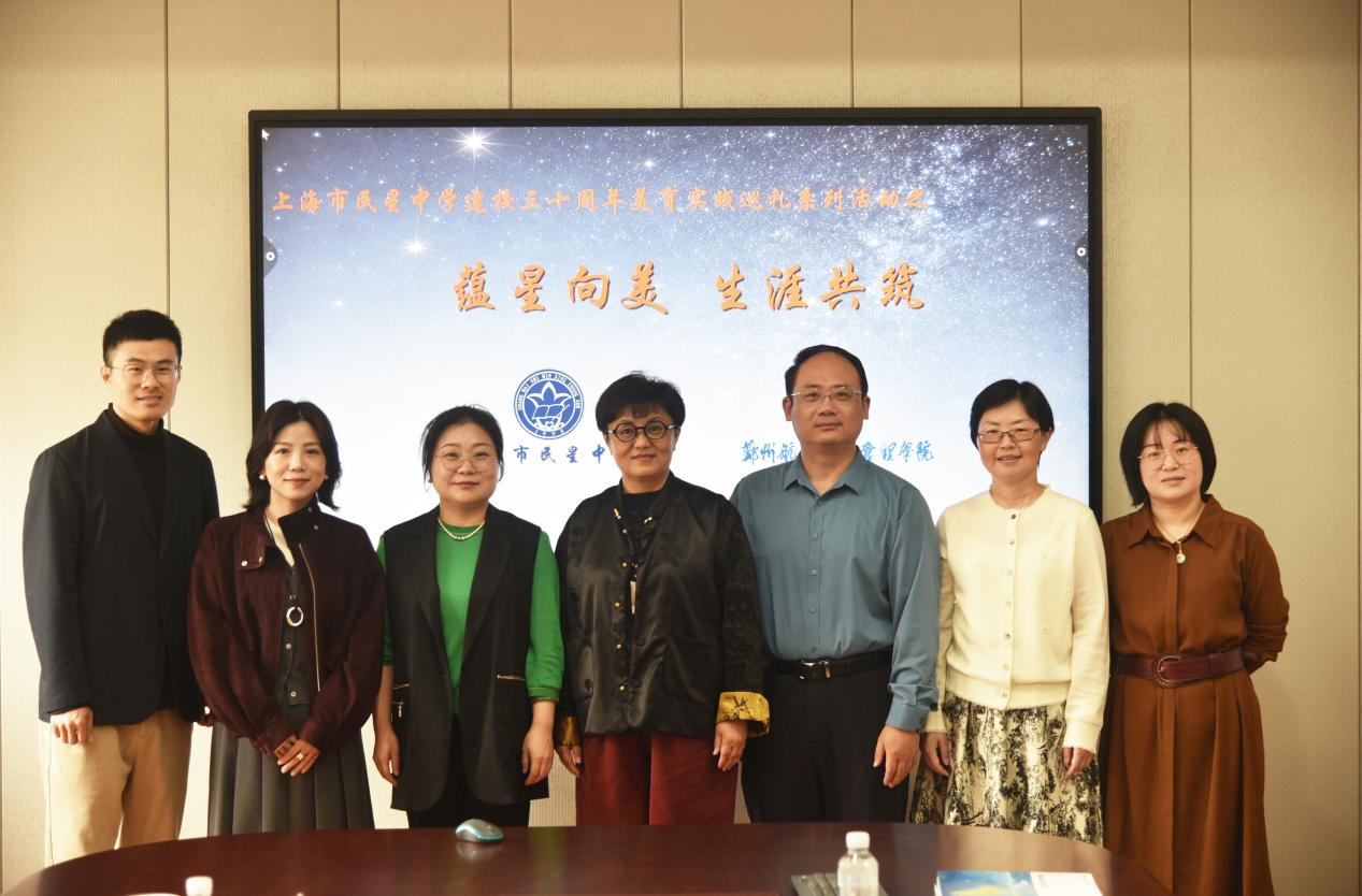 最后,杨浦区教育局高中科科长陈远磊对郑州航院艺术与设计学院一行的到来表示欢迎并在总结讲话中表示,此次座谈是民星中学深化美育内涵建设的重要里程碑,希望学校能以建校30周年为新起点,继续深化与优质高校的资源对接,把美育作为立德树人的“主色”,把生涯教育作为服务学生发展的“亮色”,让“向美而行”成为每一位民星学子最鲜亮的生命底色。