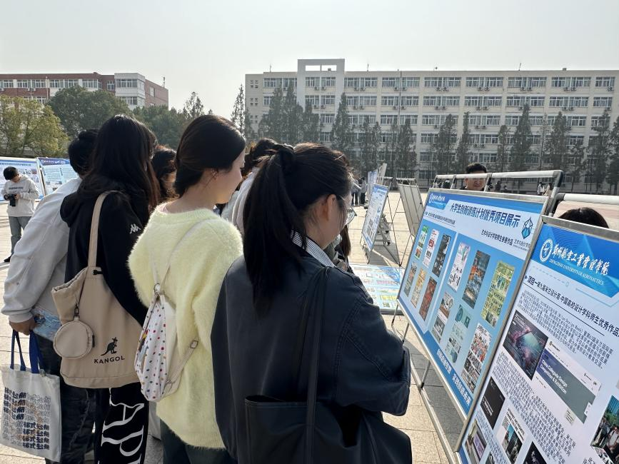 2025年11月3日,我校在中心广场举办了“大学生创新训练计划优秀项目展示”,全面展示了学校的双创教育政策和丰硕成果。其中,艺术与设计学院积极地参与活动之中,展示了我院在第九届“米兰设计周-中国高校设计学科师生优秀作品展”其中的获奖成果,在现场吸引了大量同学驻足观看、交流讨论。这一展览不仅彰显了我院在设计学科领域的强劲实力,也让更多学生直观感受到国家级顶级设计赛事的魅力,为我院的双创工作奠定了坚实基础。