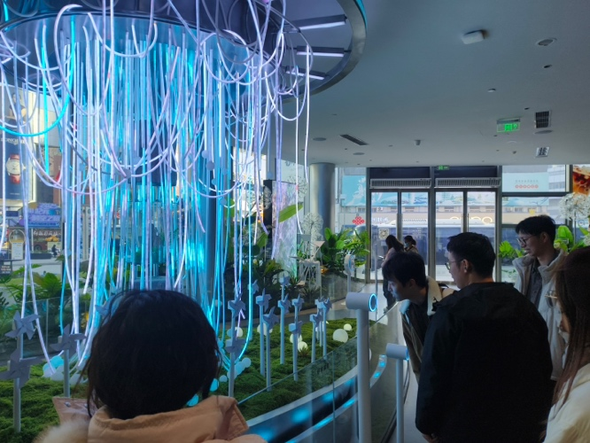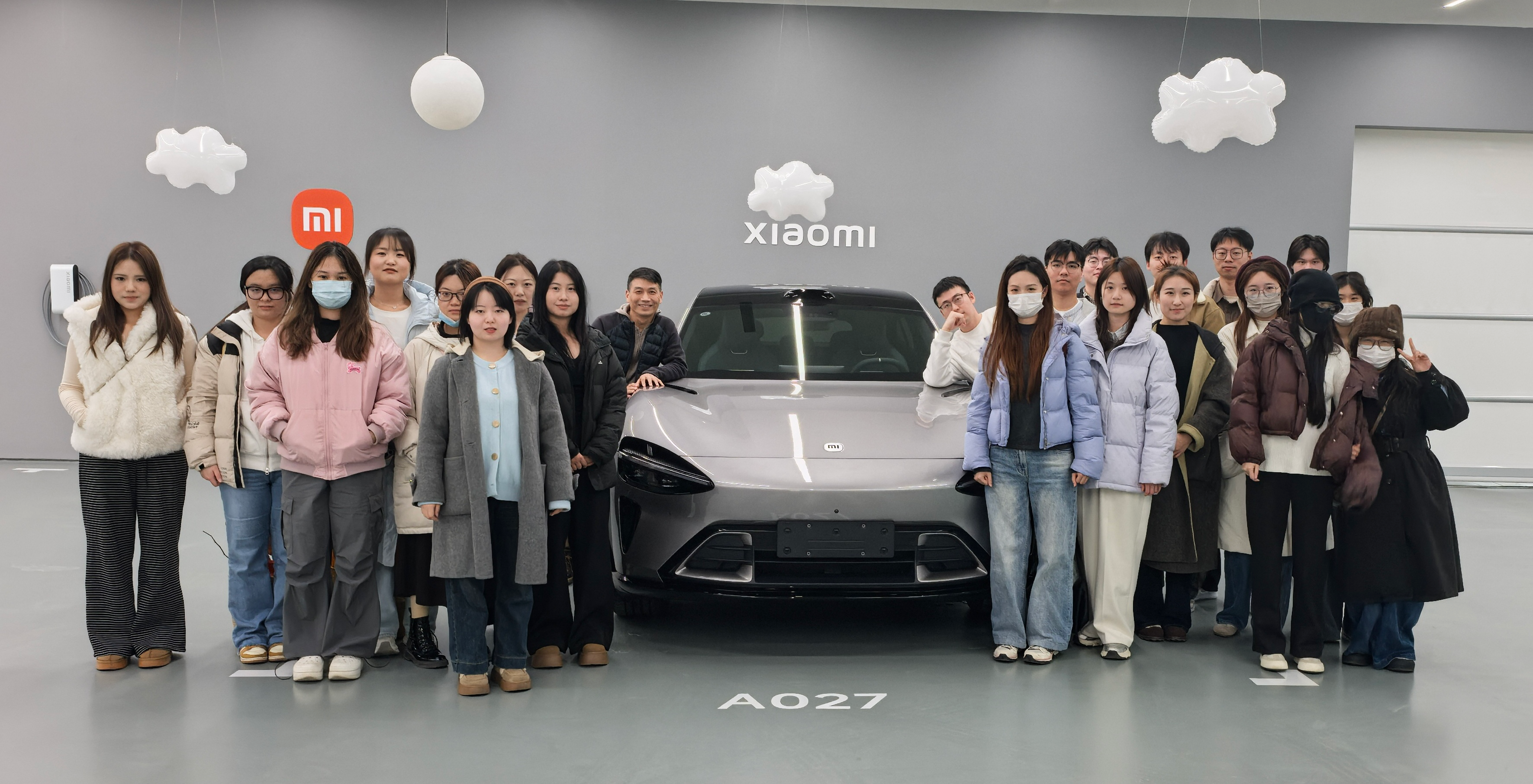 调研团队先后走访了比亚迪全系产品店、领跑汽车、特斯拉及小米汽车销售服务中心等多家新能源汽车品牌。在比亚迪展厅,同学们系统考察了最新智慧座舱的人机交互逻辑、多屏联动机制与车载生态布局,深化了对用户中心化设计理念的理解。随后,在小米汽车服务中心,团队重点体验了以“人车家全生态”为特色的澎湃OS系统,围绕其AI语音交互、多终端协同设计展开深入研讨。同学们结合消费电子思维向汽车领域的迁移,探讨了交互设计在跨领域融合中的创新可能。