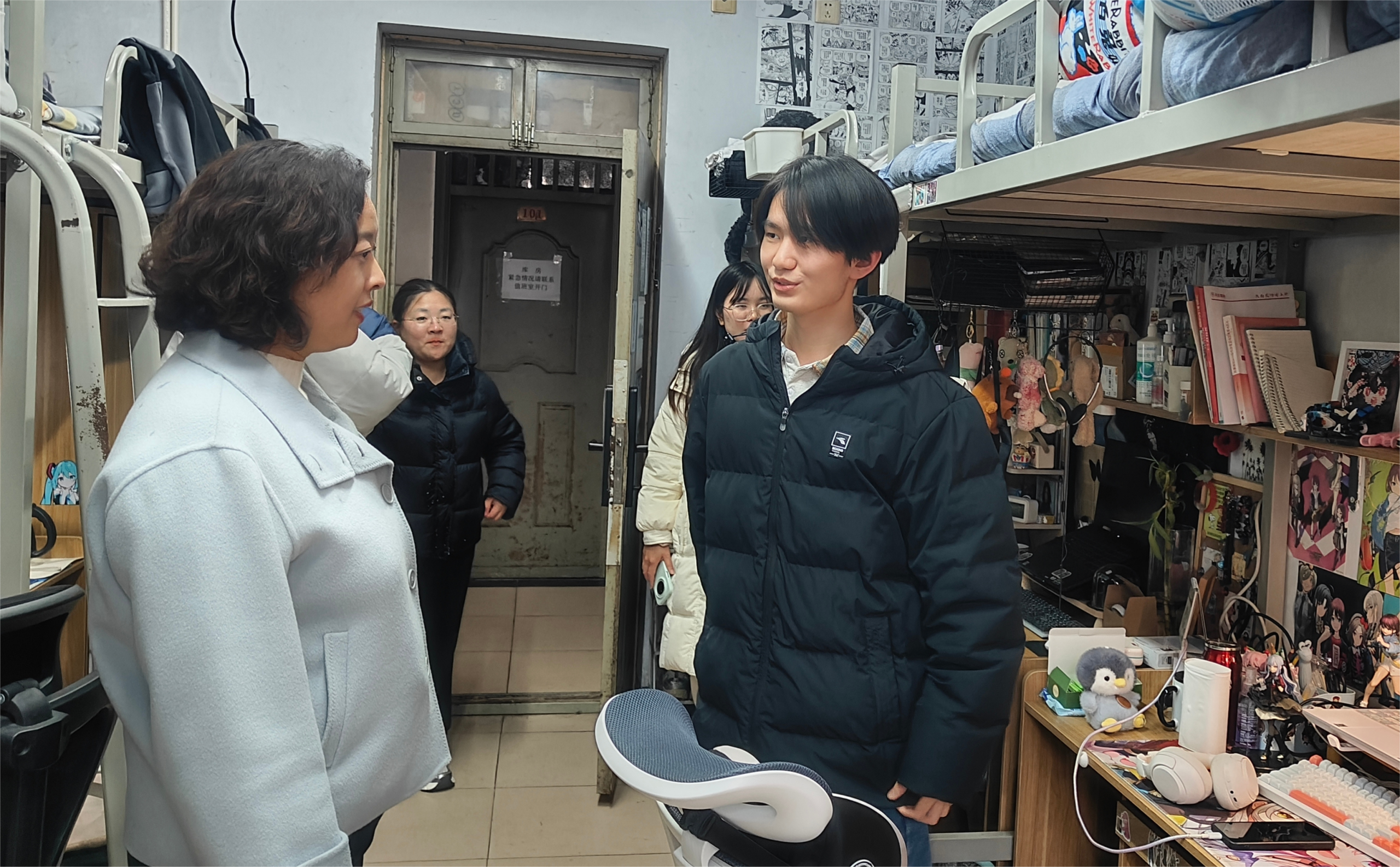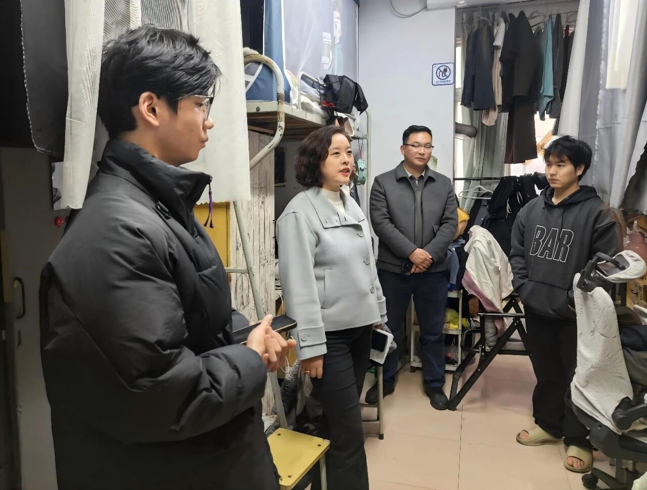 陈静一行走进宿舍,与同学们亲切交谈,详细询问返校适应、学业进展、生活保障等情况,认真倾听大家在学习、生活、后勤服务等方面的意见与诉求。她仔细查看宿舍设施、用电安全与环境卫生,叮嘱同学们严守宿舍安全规定,杜绝违规电器,保持良好作息与内务整洁。陈静勉励道,大学是人生青春最美好的时光,同学们要树立远大理想,脚踏实地勇于追求梦想,将个人发展主动融入到学校建设和国家发展大势中。在郑航这个大家庭中我们一起学习、生活、成长,不单单收获知识、能力和阅历,更多的是师生之间、同学之间、学校与学生之间的友谊、情感和温暖。同学们纷纷表示:“新学期感受到学校领导老师的关心关怀备受鼓舞,将以更饱满的热情投入新学期学习生活,用个人发展助力学校建设。”返校开学之际,我院各年级辅导员根据学院工作部署同步深入学生宿舍和课堂,清点人数、了解关注学生到校状态,做好开学前工作提醒。