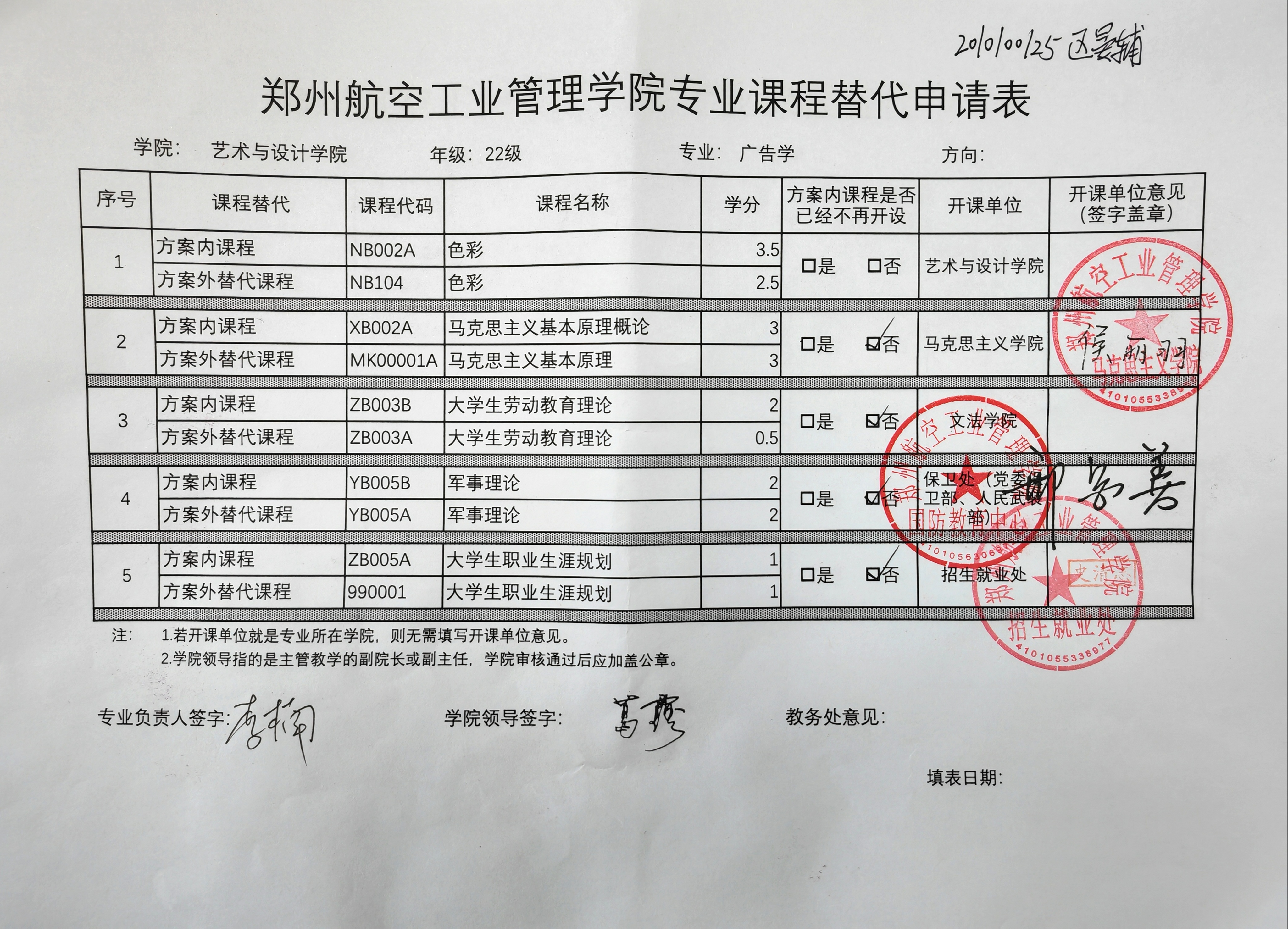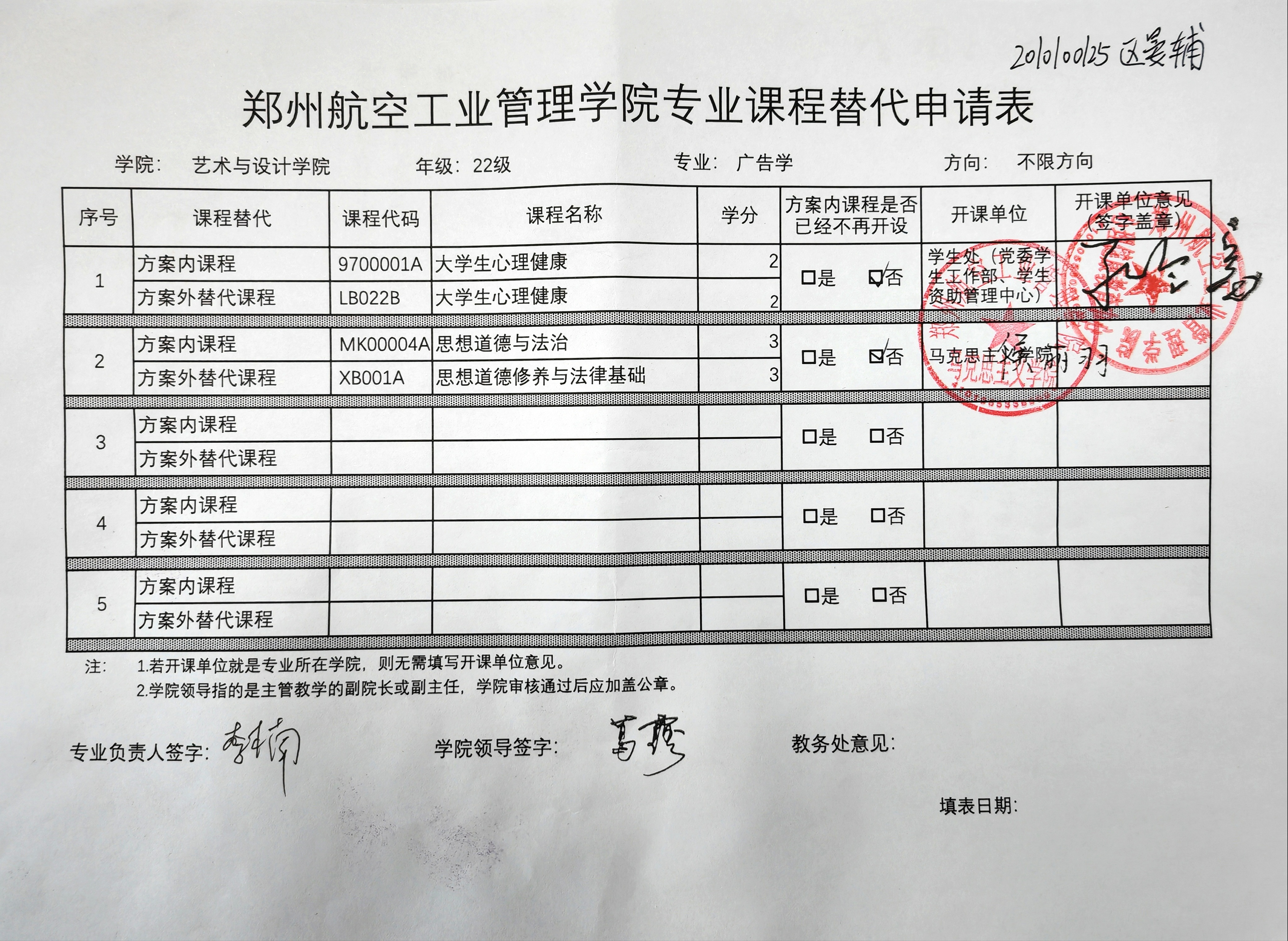 专业课程替代公示