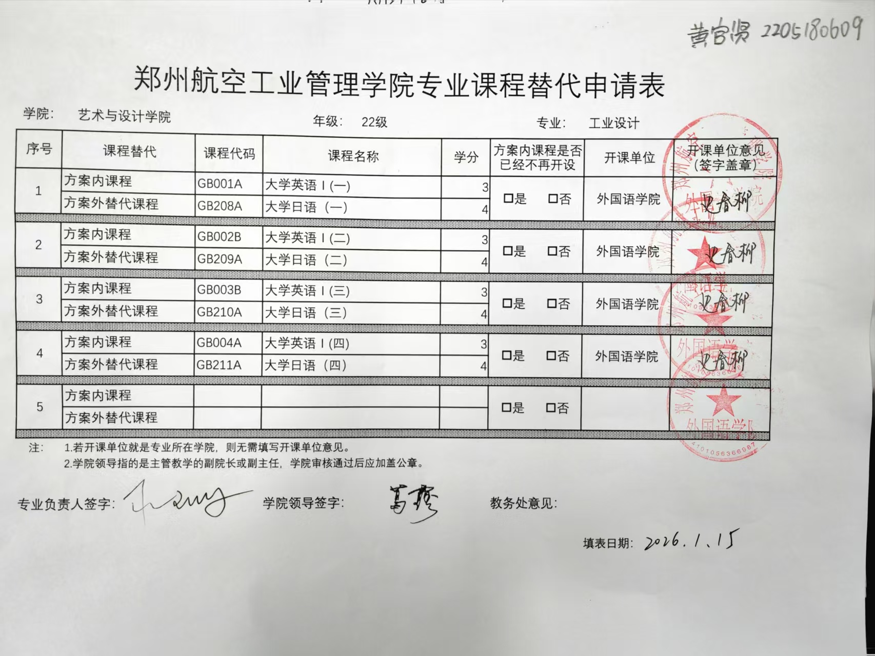 专业课程替代公示