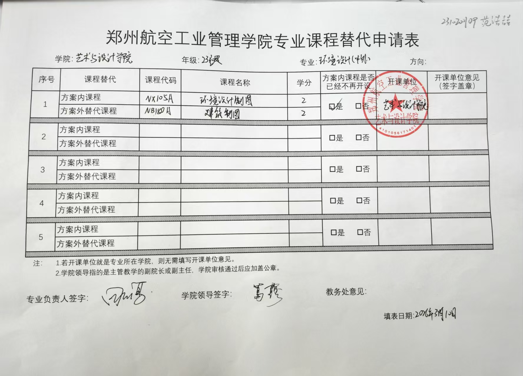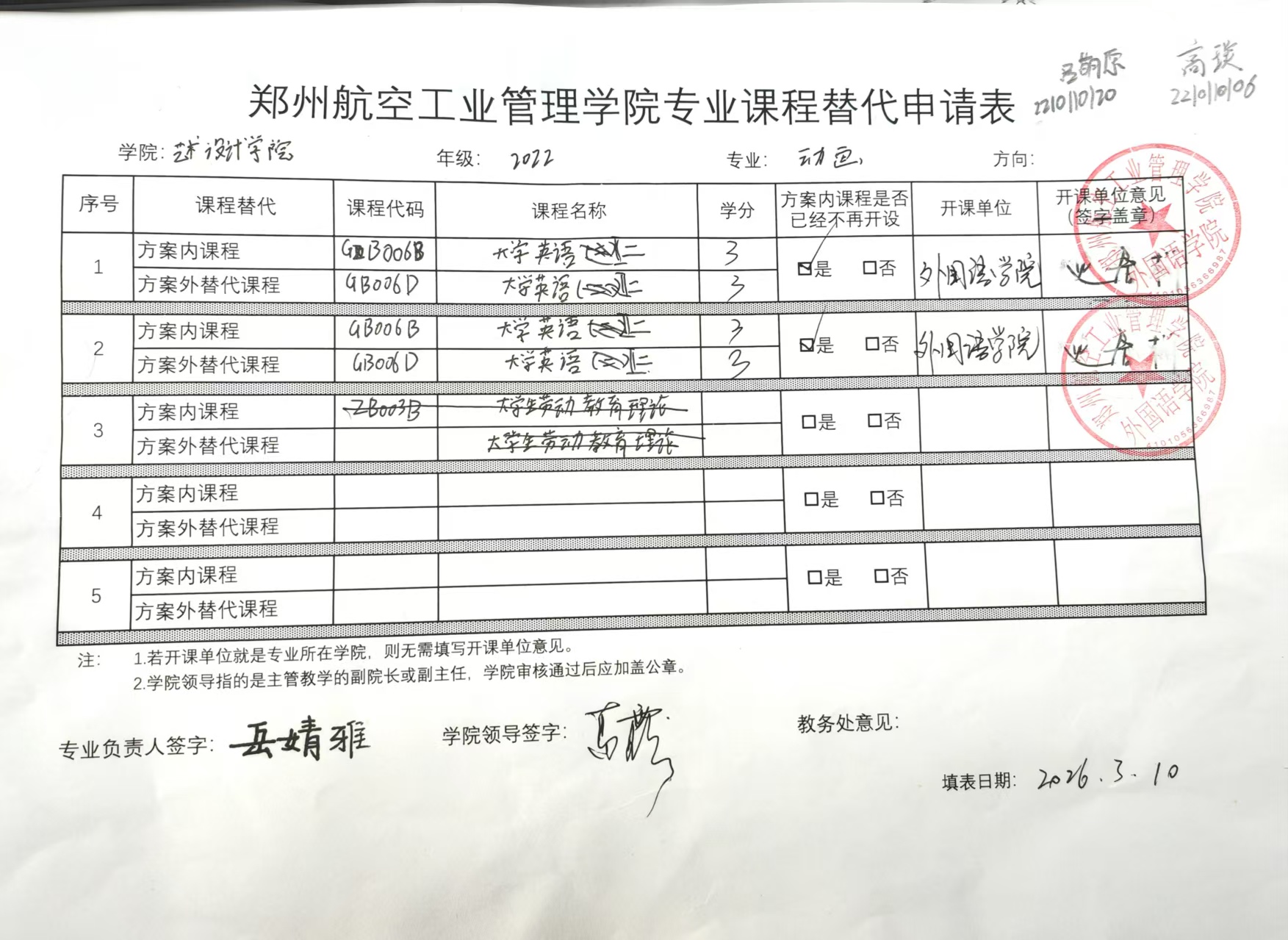 专业课程替代公示