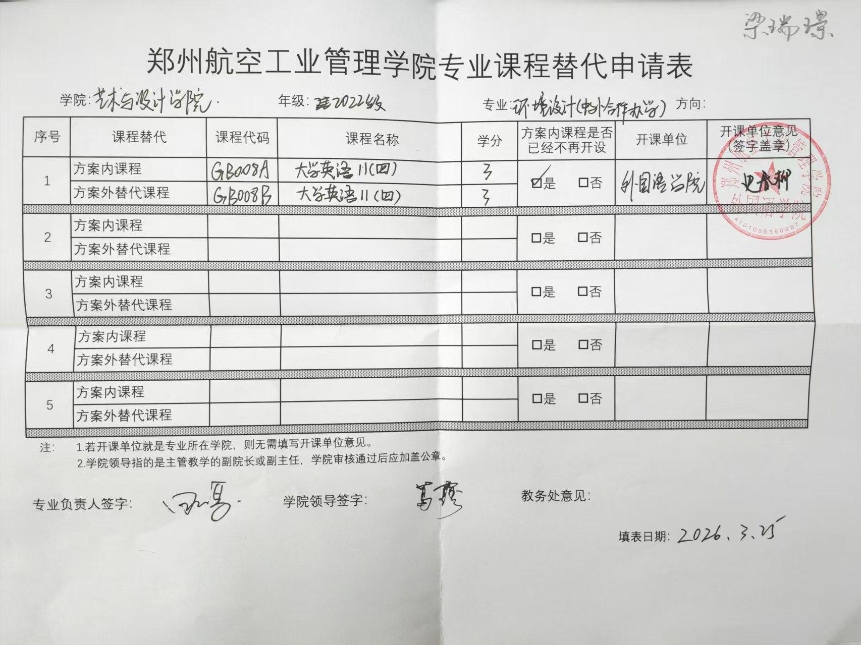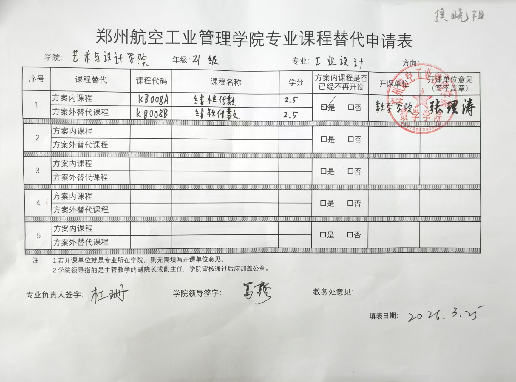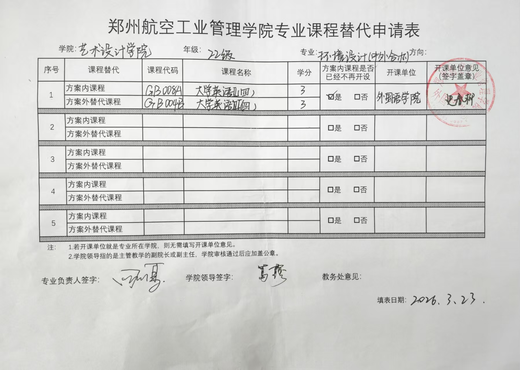 专业课程替代公示